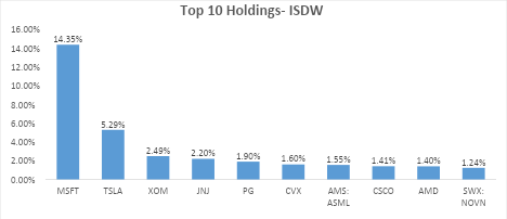 ISDW includes 457 individual holdings, with the top 10 (~33.43% of portfolio) dominated by major global leaders as of Aug 26, 2025.