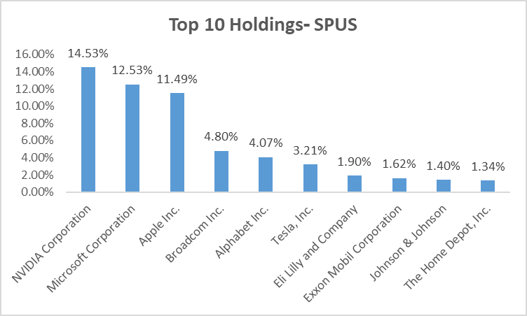 SPUS has a significant concentration in U.S. technology companies, which some investors associate with growth exposure.