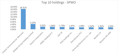 SPWO | Global ex-U.S. Equities | $73.52M | 0.55% | +13.17% |